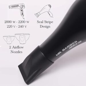 - SLEEK DESIGN: Mr. Barber’s hairdryer is soft to the touch and has an elegant seal stripe design.